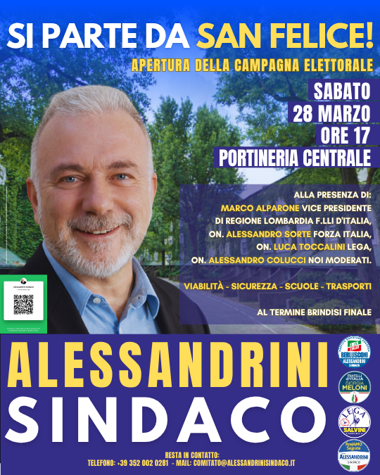 - Sito web: www.alessandrinisindaco.itComitato Elettorale via Roma 23, 20054 Segrate MI