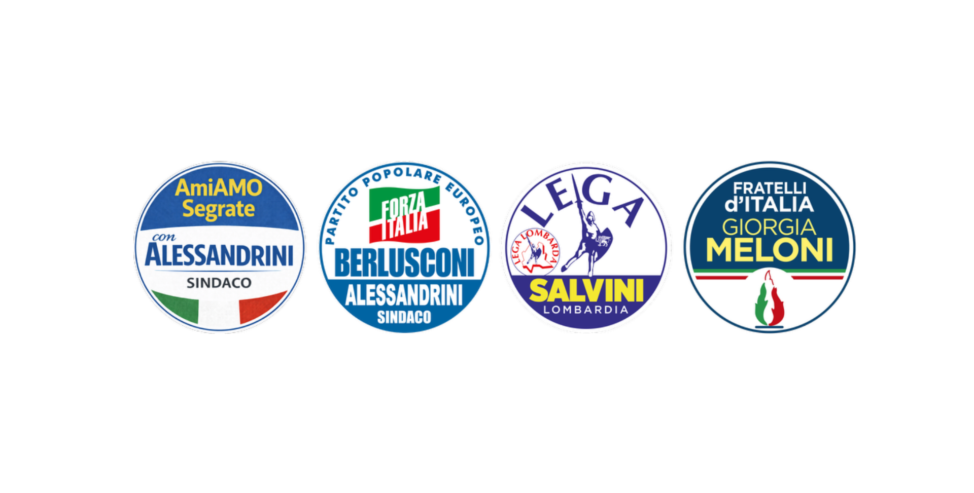 La coalizione che sostiene Adriano Alessandrini riunisce Fratelli d'Italia, Forza Italia, Lega e la lista civica Amiamo Segrate: realtà diverse, ma accomunate da una visione chiara e da obiettivi condivisi per il governo della città.